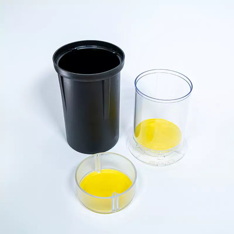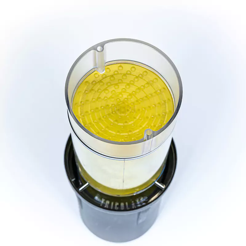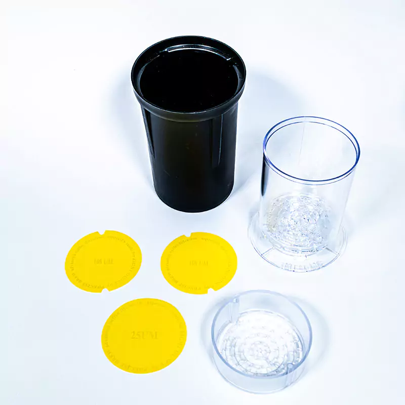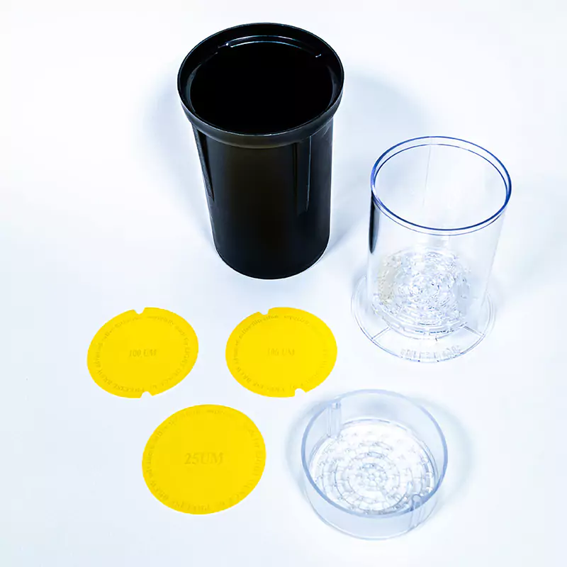 5. And we added to the trays a larger one with 100um openings and with the right notches to fit perfectly with the top of the device where you serve the water in order to distribute it evenly.
